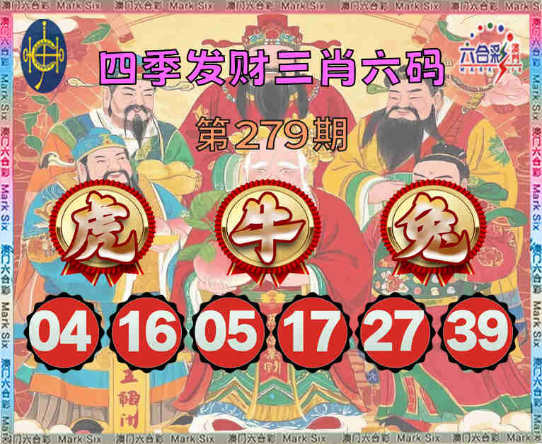 279期:『四季发财』 ☺️三肖六码☺️【虎牛】开:兔27