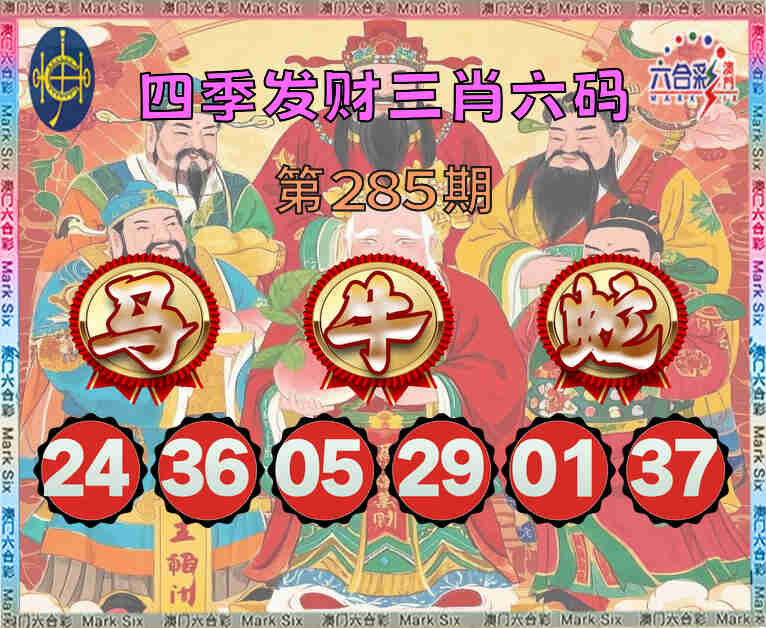 285期:『四季发财』 ☺️三肖六码☺️【牛蛇】开:马24