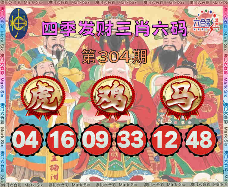 304期:『四季发财』 ☺️三肖六码☺️【虎鸡】开:马48