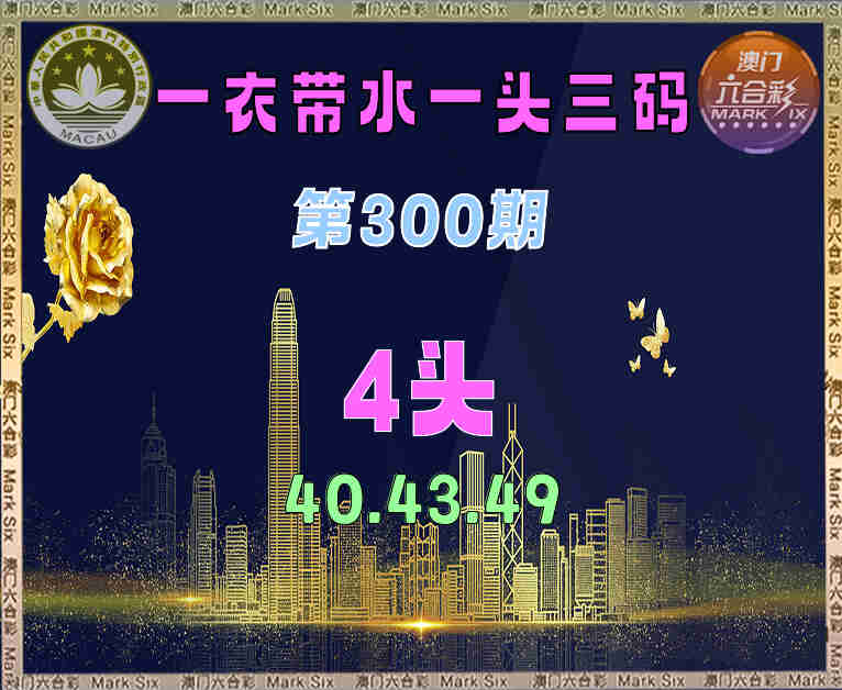 300期: 🎈『一衣带水』 🎈一头三码🎈【4头主:40.43.49】开:虎40