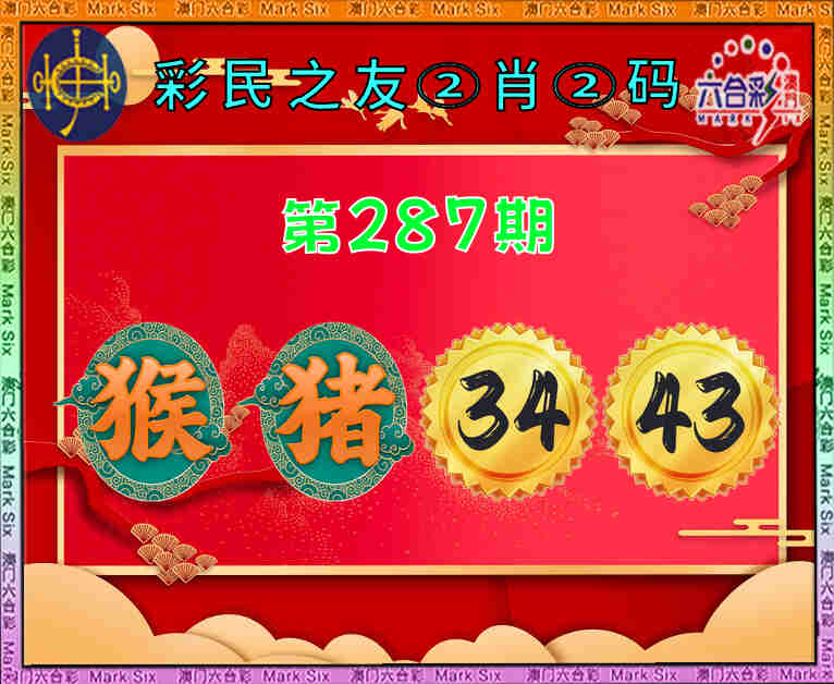 287期:『彩民之友』 🥠②肖②码🥠【猪】【34.43】开:猴34