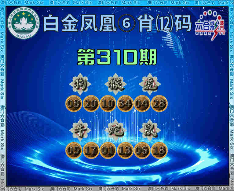 309期:【白金凤凰】 🌲⑥肖⑿码🌲【猴虎龙马猪】开:鼠06