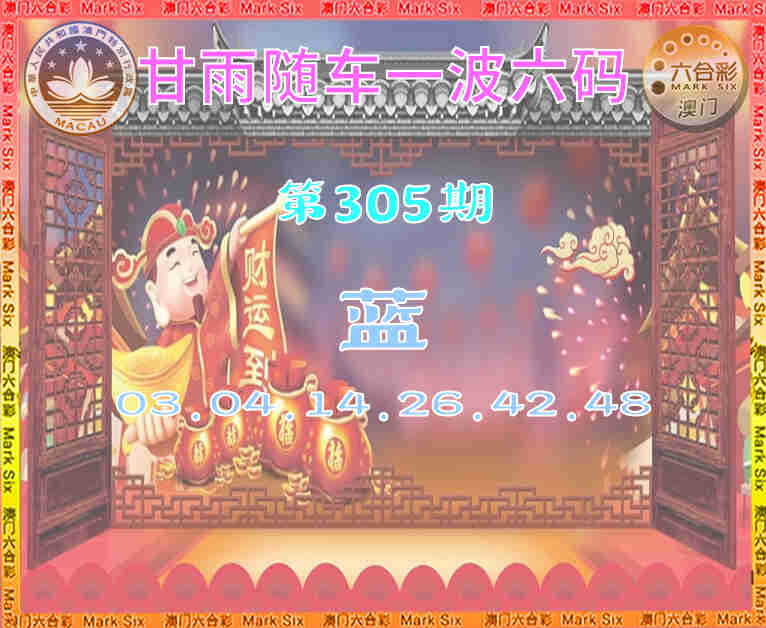 304期:『甘雨随车』 🥼一波六码🥼【波】开:马48