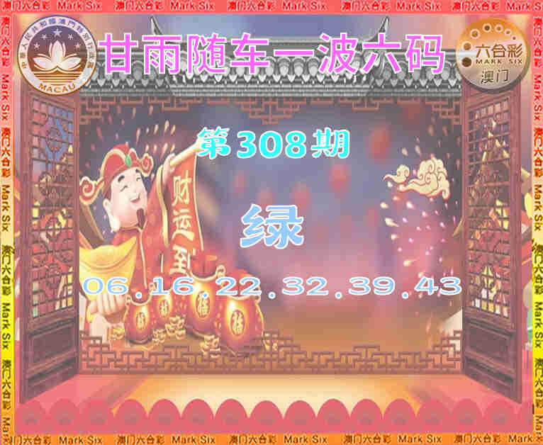 308期:『甘雨随车』 🥼一波六码🥼【绿波】开:兔39