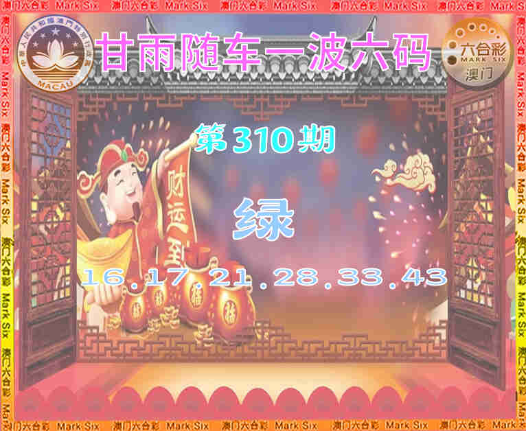 310期:『甘雨随车』 🥼一波六码🥼【绿波】开:虎16