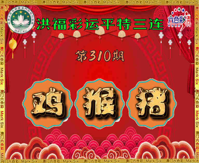 310期:《洪福彩运》 🧩平特三连🧩【鸡猴猪】开:鸡09,猴10,猪43